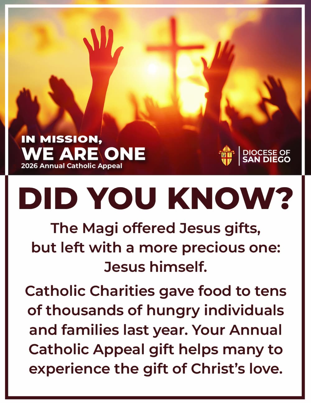 The 2026 Our Annual Catholic Appeal enables us to fund our pastoral center ministry offices and programs that help our community members to live their faith. They include our schools and programs to support faith formation at all ages, to strengthen families, to promote a culture of life, to care for creation, to engage youth and young adults, to assist the marginalized, to sustain our clergy and those preparing for the priesthood, and to extend a helping hand to the marginalized.