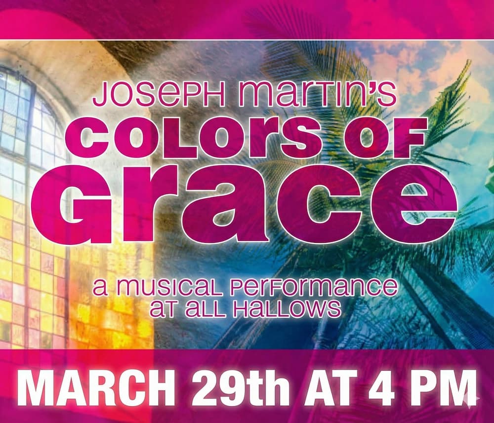 Palm Sunday Cantata When 03/29/2026 4:00 pm - 6:00 pm Add To Calendar Download ICS Google Calendar iCalendar Office 365 Outlook Live Where All Hallows Catholic Church 6602 La Jolla Scenic Dr. So., La Jolla, CA, 92037 Event Type Free Holy Week Lent Music Parish Loading Map.... 6602 La Jolla Scenic Dr. So. - La Jolla'.__('Events', 'events-manager').' 32.8347381 -117.24929509999998 March 29 – Palm Sunday Cantata “Colors of Grace” a musical performance at 4:00 p.m. in the Church